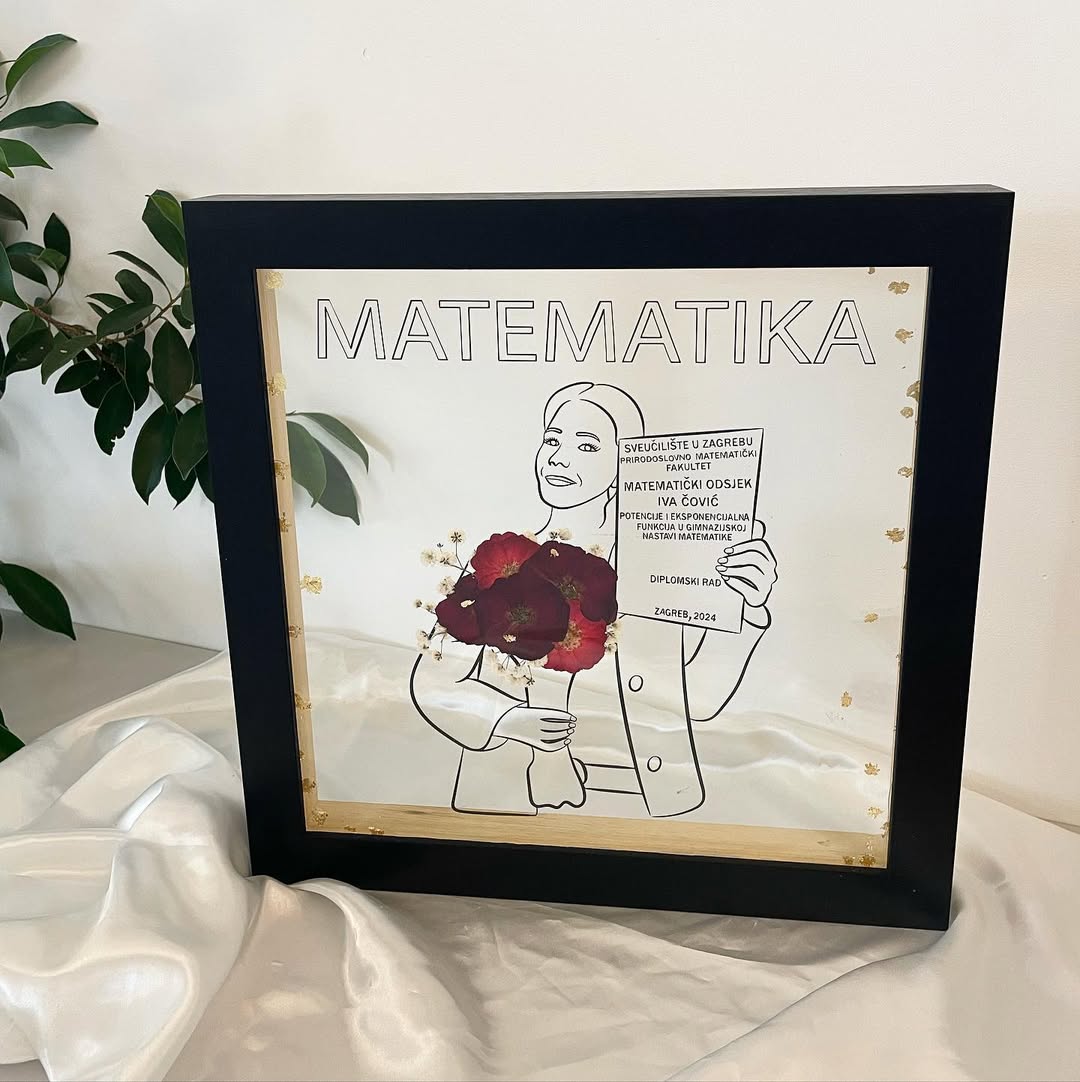 Izrađujemo unikatne poklone po vašoj želji za rođendane, svadbe, Valentinovo, krstitke i druge posebne prigode. Izaberite vlastitu fotografiju koju ćemo pretvoriti u lineart dizajn, a zatim ju kombiniramo s prešanim cvijećem kako bi nastala jedinstvena slika. Savršeno za poklone za posebne prilike!
