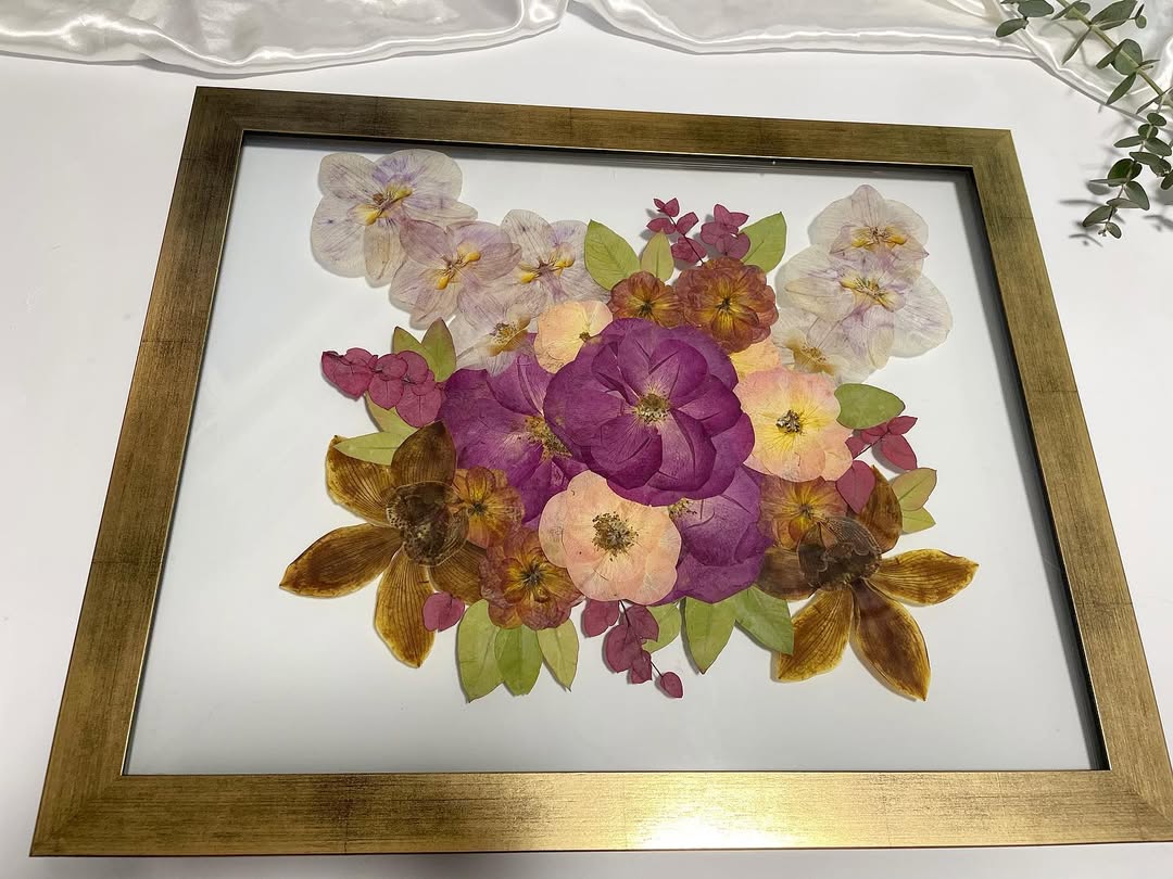 Pretvaramo vaše vjenčane bukete u jedinstvene umjetničke slike s prešanim cvijećem. Svaki cvijet pažljivo prešamo i smještamo u ručno rađeni okvir od lipe, stvarajući trajnu uspomenu na vaš poseban dan. Sačuvajte ljepotu i sentimentalnu vrijednost svog vjenčanog buketa u umjetničkom djelu koje će trajati zauvijek.